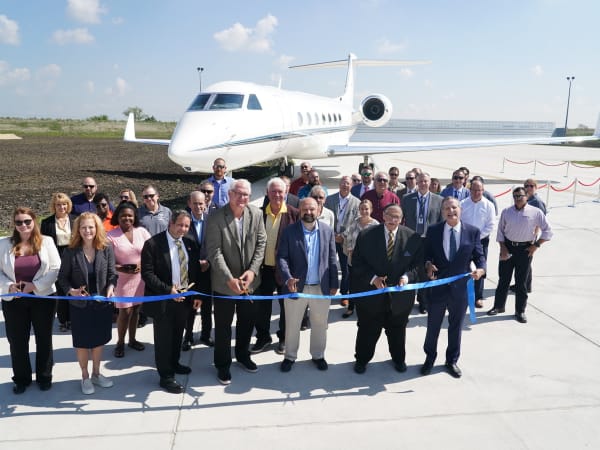 A ribbon cutting on Aug. 16 celebrated the official opening of St. Louis Downtown Airport’s new Ground Engine Run-Up and Compass Calibration Pad project.