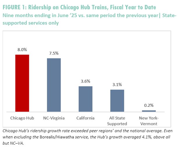 “The recent traffic growth shows that the demand for rail passenger travel in the Chicago Hub is robust,” said Schwieterman.