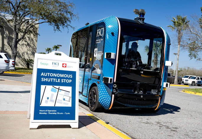 The shuttles operated by Beep, which incorporate self-driving software from Oxa, will connect students, faculty, and visitors across the segmented FSCJ Downtown Jacksonville campus on a one-mile route that connects the Advanced Technology Center with four buildings on campus.