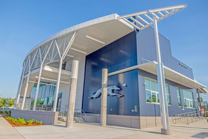 The new facility, used by Greyhound, FlixBus, and Southeast Stages, has panoramic windows that let in much sunlight, a food stand, large restrooms, and digital departure boards. Seats have power outlets, USB chargers, cushioning, and armrests with cupholders, much like airports. A rail rapid-transit stop is next door, offering a quick ride to downtown Atlanta and Atlanta Hartsfield International Airport.