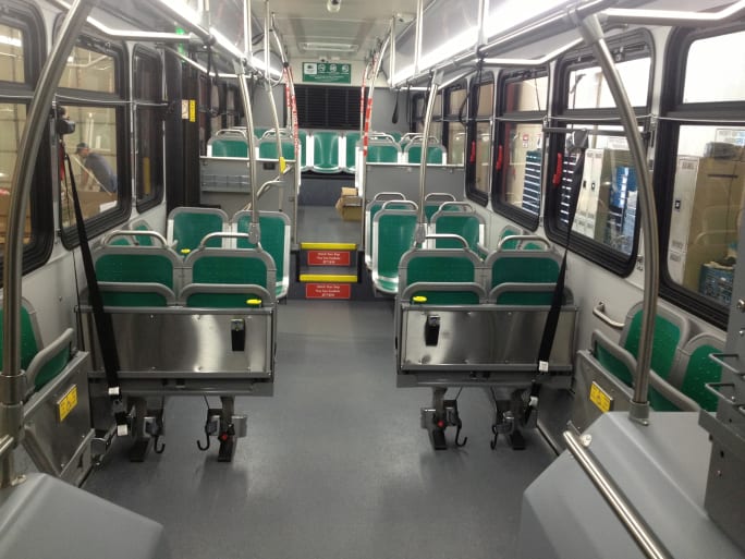 In response to the agency’s issues with passengers needing a place to store such items as strollers and carts, American Seating’s flip-up seat made its debut on Calif.-based Long Beach Transit’s buses.