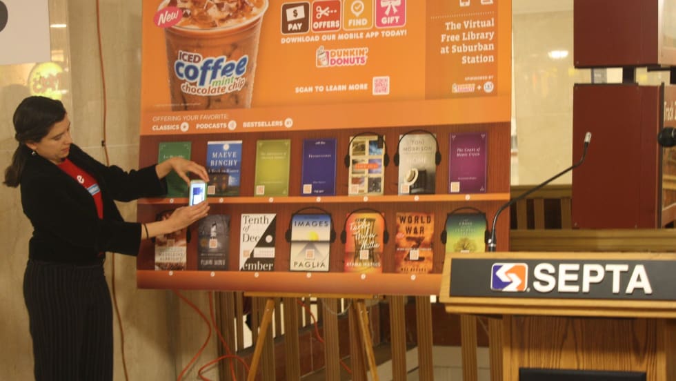 Read More →For the month of April, the agency, the Free Library of Philadelphia and Dunkin’ Donuts have “opened” at SEPTA’s Suburban Station what is believed to be the first virtual library at a U.S. train station.