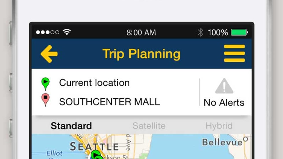 Puget Sound Trip Planner app—available for Apple and Android mobile devices—allows riders to plan a trip that covers many transportation choices, including buses, rail, ferries, streetcars and water taxis