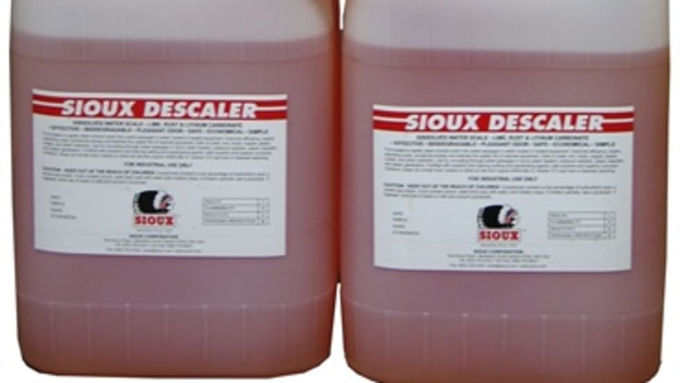 To reduce and eliminate lime-scale buildup, Sioux Corp. is introducing the Sioux Descaler, a biodegradable liquid available in five-gallon jugs and 30-gallon drums, formulated to economically and effectively dissolve scale buildup in machines.