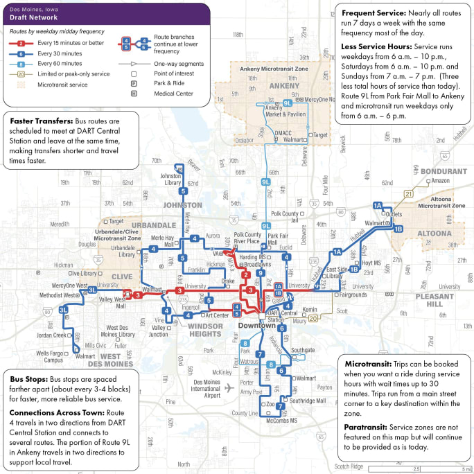 "Reimagine DART is about more than changing bus routes — it’s about building a transit network that maximizes our resources and delivers the services our region values most,” said Amanda Wanke, DART CEO. “Designing a new network that prioritizes ridership allows people to travel farther, faster than they can today, making the service more useful for more people in central Iowa.”
