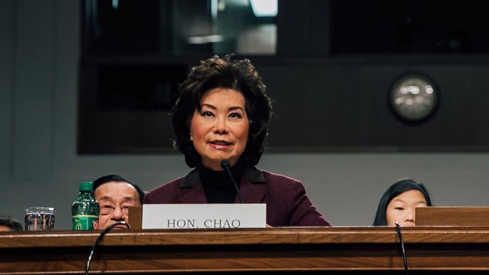 Secretary of Transportation Elaine Chao is resigning, effective Monday, Jan. 11, the first member of President Donald Trump’s cabinet to leave in the wake of the Jan. 6 mob of his supporters breaching the U.S. Capitol.