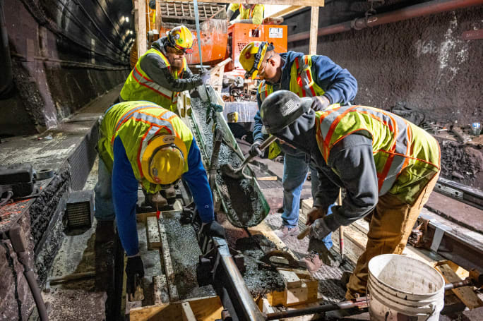 Crews repaired concrete slabs along the Red Line track area.