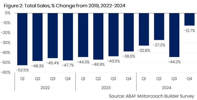 Pre-owned sales in 2024 are 4.2% lower than 2023 and 88.5% lower than 2019 sales of pre-owned motorcoaches.