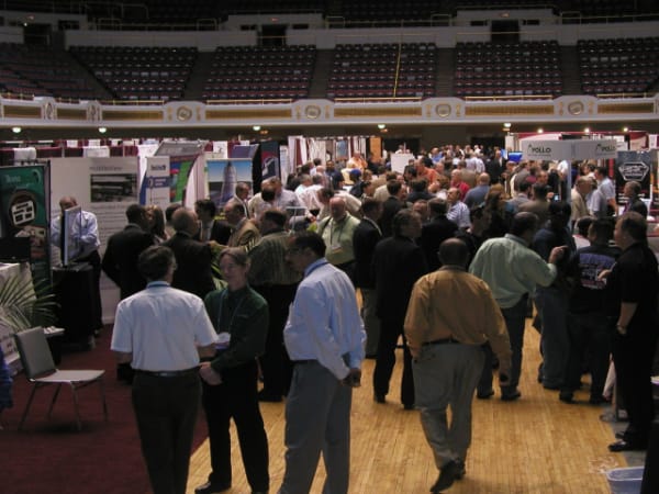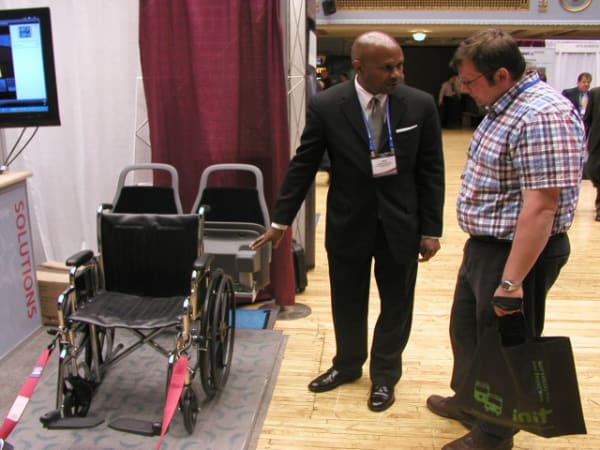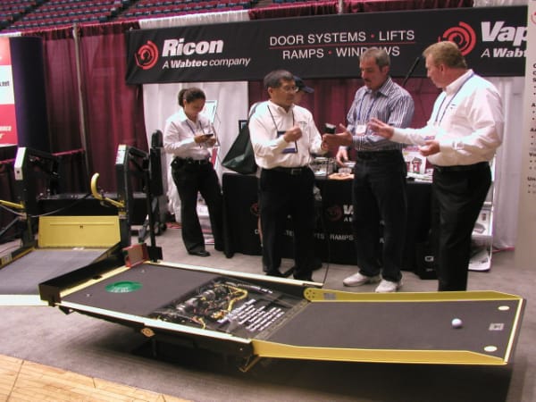 Attendees get a demonstration from the folks in the Wabtec booth.