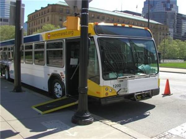 A Metro Transit bus on display in the heart of downtown Cleveland.