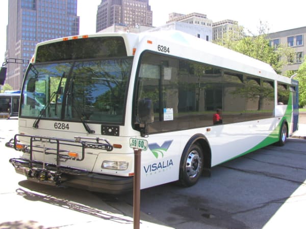 This new Visalia, Calif., bus recently put into service uses clean burning fuel to provide almost zero emissions.