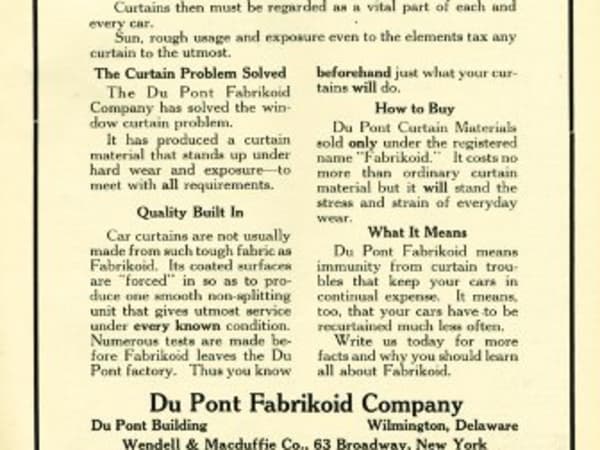This ad boasts the Du Pont Fabrikoid Company has solved the window curtain problem.