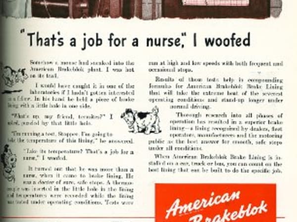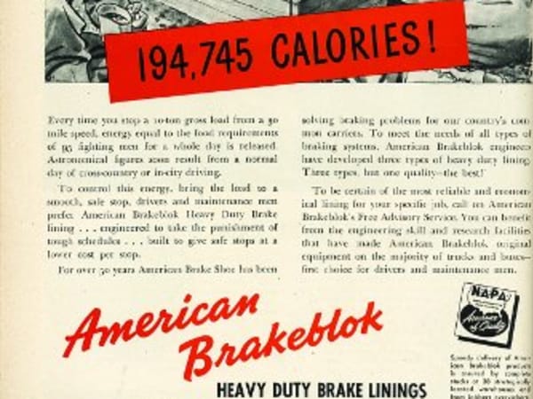 This ad explains temperature tests help American Brake Shoe Co. manufacture more durable brake lining formulas.
