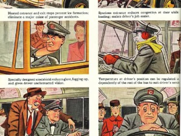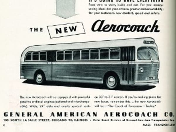 An ad from the early 20th century from General American Aerocoach Co. describing greater maneuverability for the driver and new comfort for the customers.
