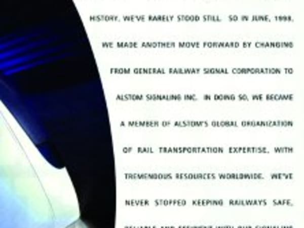 An ad from ALSTOM Signalling Inc. describing 1998 name change from General Railway Signal Corporation.