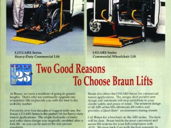 An ad from The Braun Corp. for commercial wheelchair lifts.