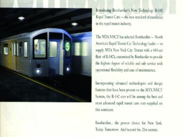 An ad from Bombardier Corp. for their new techology R-142 rapid transit cars.