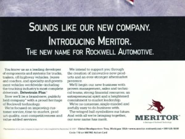 An ad from Meritor Inc. which is the new name for Rockwell Automotive.