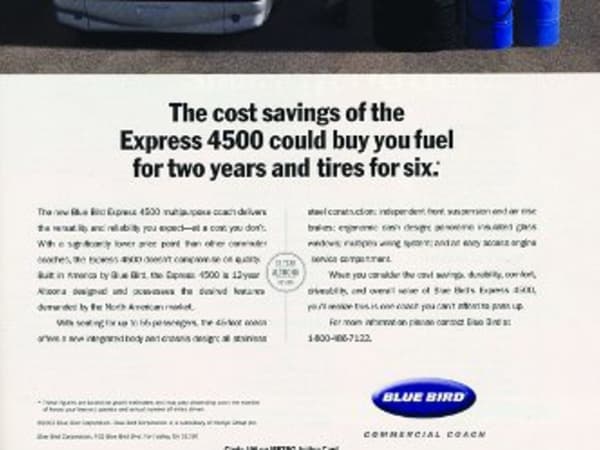 An ad from Blue Bird Corp. for the new Express 4500 multipurpose coach.