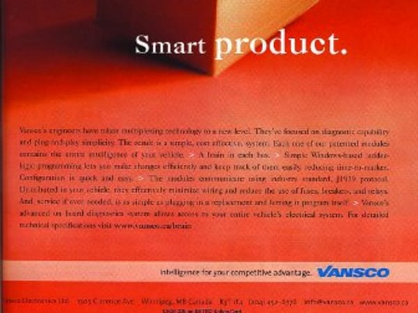 An ad from Vansco Electronics Ltd. for multiplex systems with advanced on board diagnostics.