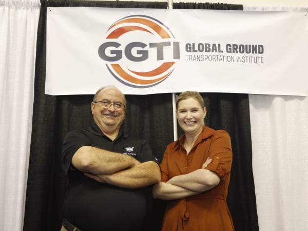 Bus Advisors' Tom Holden, who hosted BusCon's motorcoach sessions, with GGTI's Executive Director Sarah Gazi.