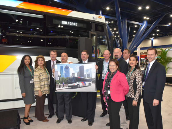 MCI showcased its latest clean-diesel Commuter Coach built for Houston METRO as part of its 95-bus order. The 40-foot, CNG coach, which is one of the first to feature new Bendix braking and ZF axle systems, includes an impressive set of standard features, including a Luminator destination sign, a Transmark Mobile View nine-camera color surveillance system, and 110-volt power outlets with USB plugs at every seat.