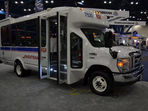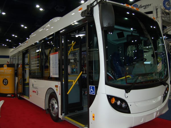 ElDorado National featured its Aerotech shuttle bus operated by the Greater Cleveland Regional Transit Authority. The propane-fueled paratransit shuttle bus is built on a Ford E-450 chassis and equipped with a Roush CleanTech liquid propane autogas fuel system installed by Green Alternative Systems. The body of the Aerotech bus model is designed on a fiberglass composite reinforced structure. The bus also features a wheelchair lift.