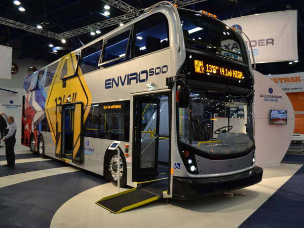 The new-look Enviro500 double deck bus, at just 13 feet, six inches in height, will operate virtually anywhere in the U.S. and Canada. The ideal solution for carrying large numbers of passengers while occupying a smaller roadspace (around 100 passengers in a 40-foot length). Benefits include low operating and purchase costs; lowest fuel consumption per passenger carried; excellent stability and ride; fully air conditioned and exceptional passenger comfort