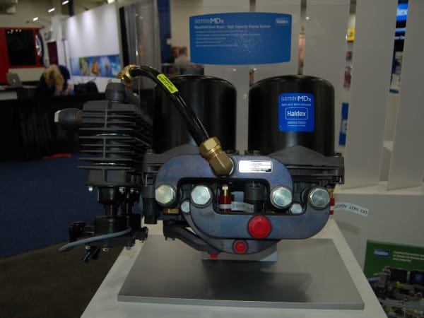 Haldex’s new GeminiMDX is a systematic approach for exceptional air system protection and maximum drying capacity. It is pre-assembled with custom mounting brackets for easy installation and removal. The custom manifolds eliminate the need for fittings and tubes in parallel plumbing and allow for maximum use of valuable space. www.haldex.com