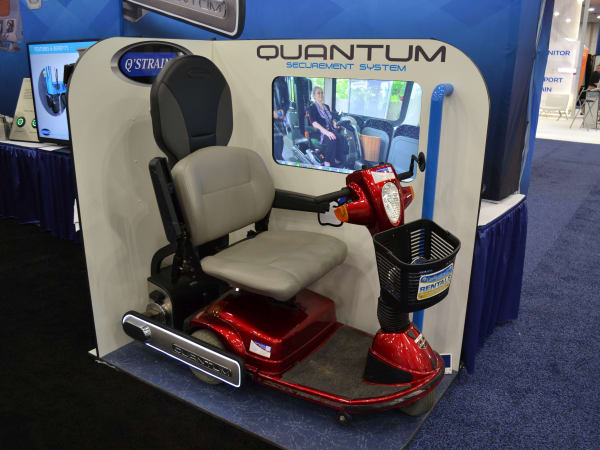 Quantum, the transportation industry’s first fully-automatic, rear-facing wheelchair securement station, allows passengers to board a bus or railcar, quickly position their chairs, and simply push a button to secure themselves in a stable and safe rear-facing position without driver assistance — all in under 25 seconds. Once the vehicle reaches the destination and stops, the passenger simply pushes the button again and independently makes their exit.