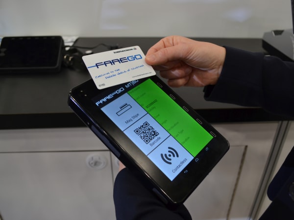 The multifunctional FareGo Move MT/60, the first handheld device designed specifically for use in fare management, supports all ticketing processes and can be used as a portable POS unit in addition to use in vehicles. Key features include: variable barcode reader; high-performance and scalable architecture; ergonomic user interface; universal magnetic card reader; and a high-capacity battery, with an operating time of over 10 hours.