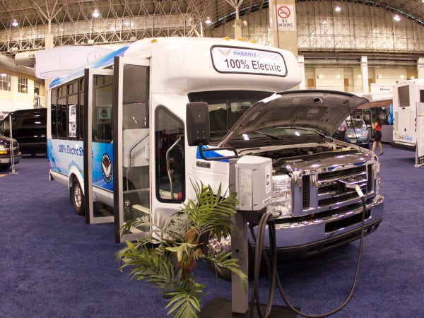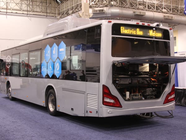 CCW's electric bus featuring the WAVE charging system.