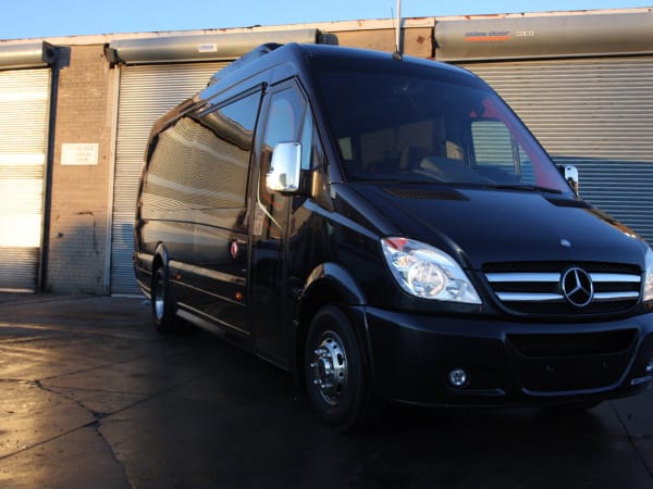 The Dur-A-Bus GT upfit features an air-tight fully-electric plug door; a bigger windshield and larger passenger windows; elevated or stadium-style seating; and the largest luggage capacity for any Sprinter minibus on the market. Additional features include a 13.5-inch TV monitor (with the ability to add more monitors); overhead parcel racks for extra luggage storage; fully reclining leather seats equipped with arm rest’s and three-point seat belts; and illuminated steps, aisle way and mood lighting.