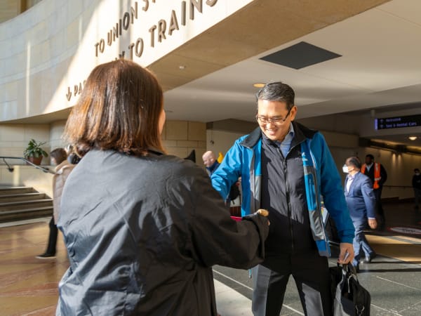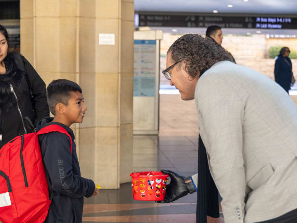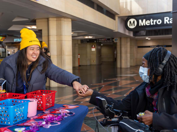 The day began with members of Metrolink’s Board of Directors, local elected officials, along with Metrolink CEO Darren Kettle and staff — donned in branded beanies — extending warm greetings to customers at stations on each of Metrolink’s seven service lines. Tokens of appreciation, such as smiles, swag, and candy favors were shared to uplift the spirits of morning customers.