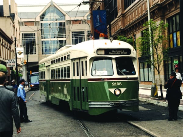 In 1975, the first national conference on light rail is held June 22-25 in Philadelphia, drawing about 550 transit professionals. Speakers from the U.S., Canada and West Germany expound on the topic of light rail transit, emphasizing advantages such as the costs of construction and operation. Conferees ride a local light rail line and take a trip to an assembly plant where light rail vehicles are being built.