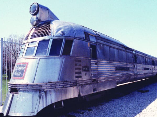 1934 marks the introduction of the Pioneer Zephyr, America's first diesel-powered, streamlined passenger train. On May 26, the Chicago Burlington & Quincy Railroad Co. staged a milestone transportation event - a 1,000 mile record breaking, non-stop run of the Pioneer Zephyr from Denver to the Century of Progess World's Fair in Chicago. Reaching speeds of more than 100 mph and averaging about 70 mph, the train makes the trip in 14 hours. The Zephyr represents a precursor to thousands of diesels, which, after World War II, replaces steam locomotives on virtually every railroad in the country.
