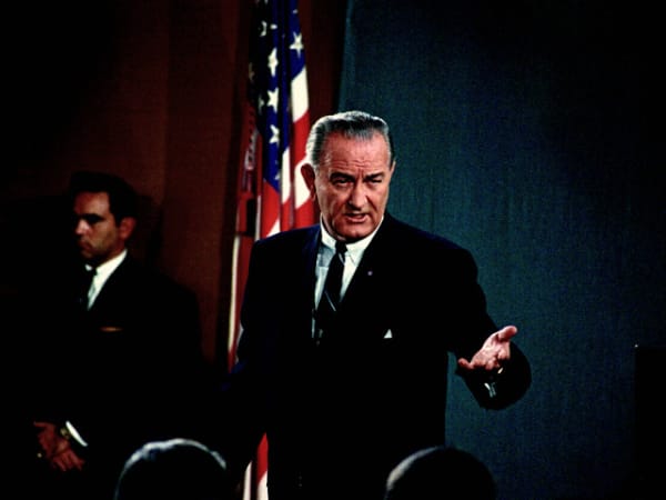 In 1964, President Lyndon Johnson officiates the groundbreaking ceremonies for the Bay Area Rapid Transit's (BART) Diablo Test Track. The 4.4 mile track in the San Francisco area is used to develope new designs for BART's transit car and automatic train control system. It is the first phase of a billion-dollar transit network.