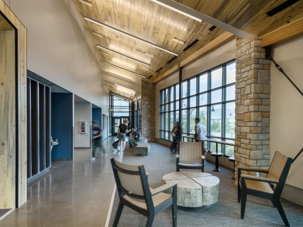 Building materials used are durable long-term materials that are low maintenance for operational staff along with sustainable landscaping surrounding the facility. The in-slab concrete heating around the building provides an automated system to offset low staff availability during imminent weather (no snow shoveling) along with low-impact maintenance, including a rooftop photovoltaic (PV) panel to promote sustainable building practices.