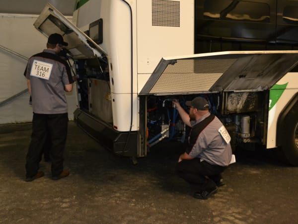 Each team was asked to inspect a bus following the written test portion the day before.