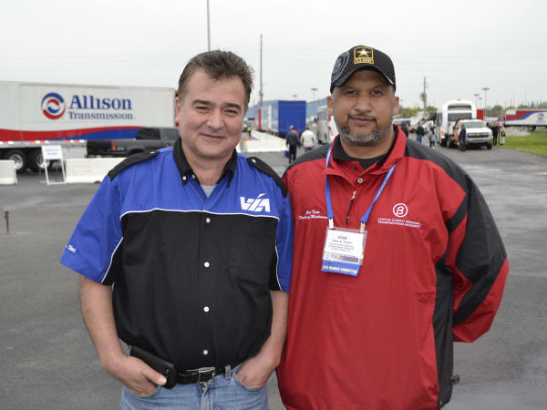 San Antonio VIA Metropolitan Transit's Joe Diaz (left) and Corpus Christi Regional Transportation Authority's Jose A. Tovar competed in the mechanics portion of the Roadeo.