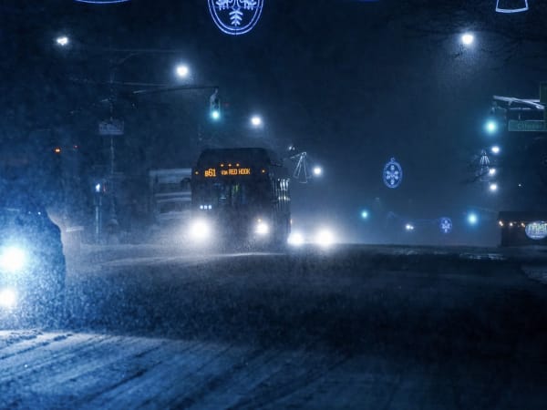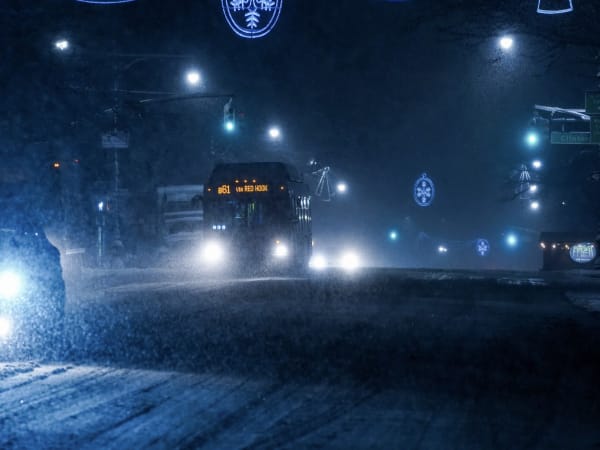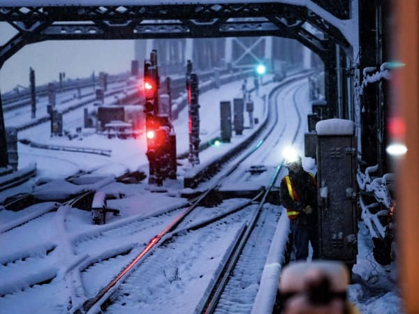 Precautionary measures included salting platforms and stairs at stations, chaining articulated buses, and keeping track switches and third rail clear of snow.