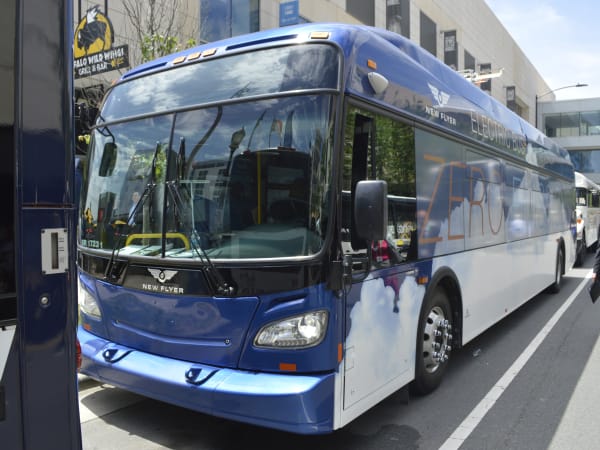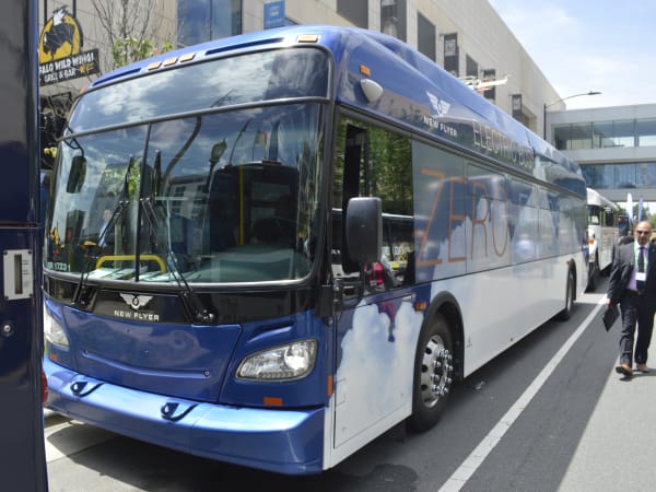 In addition to its MiDi bus, New Flyer also showcased its Excelsior XE electric bus. The bus' Siemens Electric Drive System converts three-phase alternating current power to drive the traction motor by using direct current power from the batteries. When braking, the motor acts as a generator to recover energy, providing more efficient energy conservation.