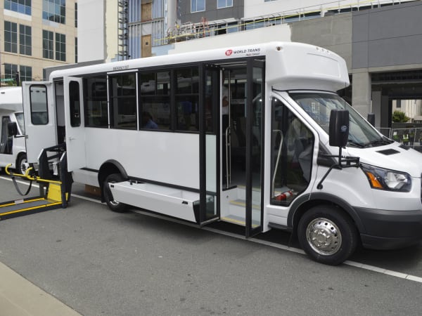 The REV Group showcased offerings from ENC, ElDorado, ElDorado Mobility and Champion. It also debuted its new World Trans brand (pictured), which features a narrow-body design that offers easy vehicle maneuverability; a large view-out window that reduces blind spots and enhances visibility; and an industry-leading external storage compartment. The model has a maximum of 18 passengers plus driver.