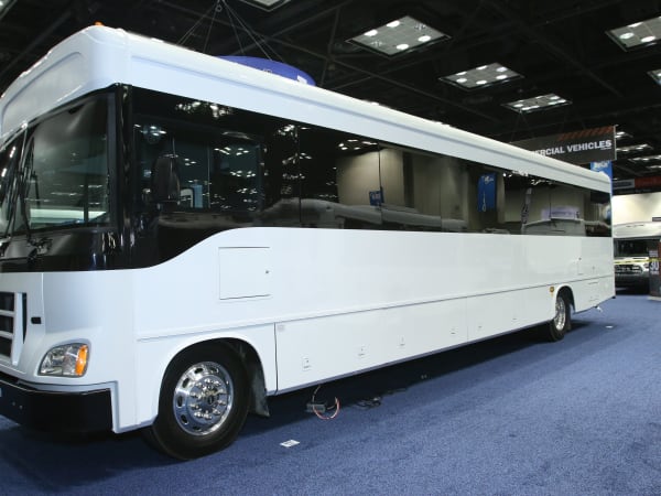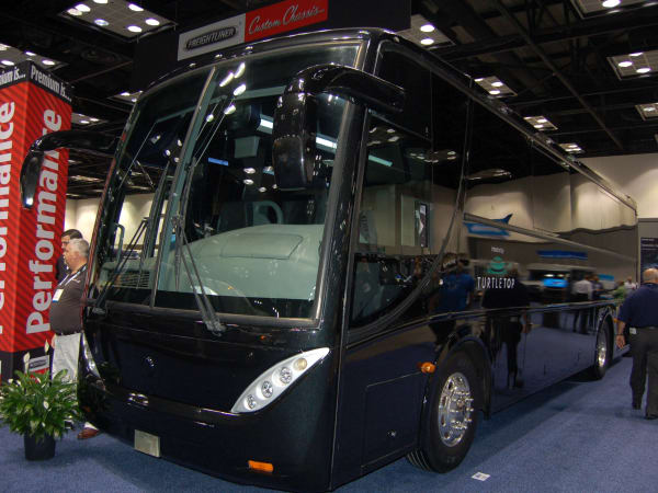Freightliner’s chassis featured several chassis around the show floor, including a collaboration with Caio and Turtle Top for a G3400 motorcoach with an XBR raised-rail, rear-engine chassis. The XBR is powered by a Cummins 8.9L ISL engine offering 330 HP and 1,000 LB-FT of torque, and also features an Allison B400 automatic transmission and GVWR up to 37,000 lbs.