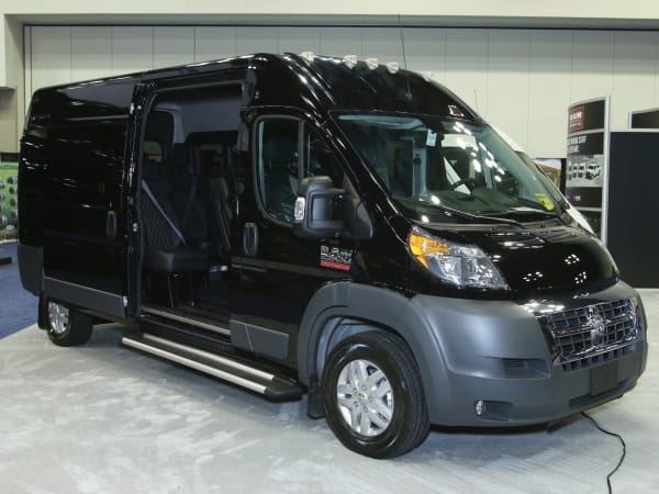 The Ram ProMaster® features a standard V6 engine and boasts a class-exclusive front-wheel-drive system, which allows for responsive handling. One of the models on the show floor featured 2+1 seating, with room for 12 passengers, while the other accommodated six passengers and was ideal for paratransit usage, with a lift in the rear of the vehicle.