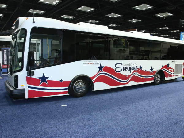 The Mobileye Shield+ Collision Avoidance System with pedestrian and cyclist side-sensing is the latest technological advancement for preventing vehicle-to-pedestrian incidents. This unique, multi-vision-sensor system provides drivers with alerts when pedestrians and cyclists are in the danger zones on the sides and front of the bus. The company featured this system during the BusCon Ride & Drive held throughout both days of the show.