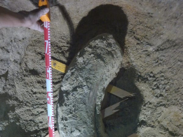 Unearthing the skull and tusks of possibly a mammoth or mastadon. Photo: Metro