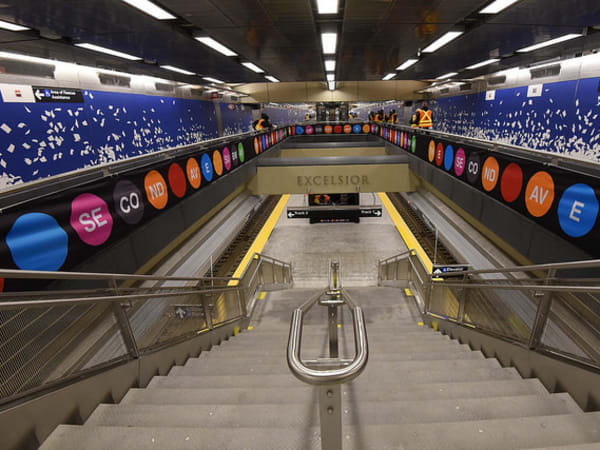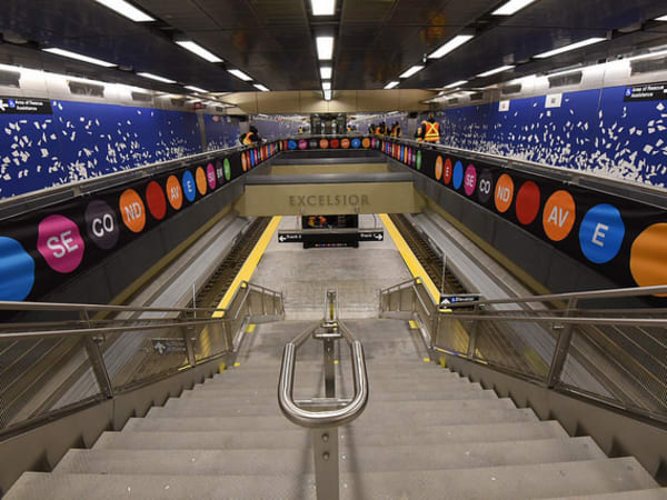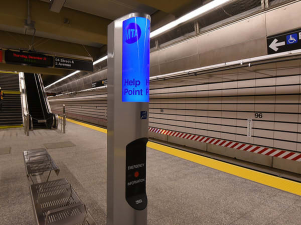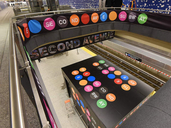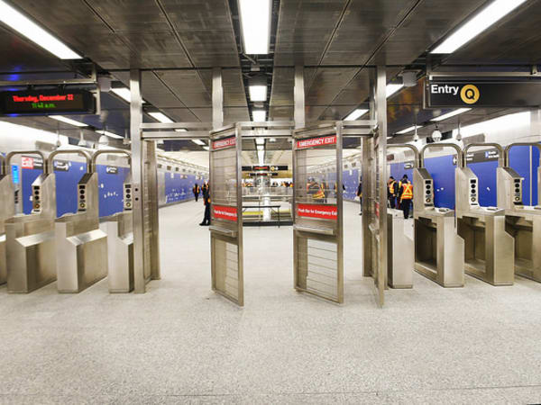 Features of the new 96th St. station for NYC's Second Avenue Subway, unveiled on Dec. 22, 2016, include access for the disabled, climate control to maximize customer comfort, modern computerized signage, and column-free construction for an open, airy atmosphere. The station spans three city blocks at 1,591 feet long and 57 feet wide, and was built with high-ceiling and column-free design to create an airy sense of openness. Its two-tiered mezzanine design is a fixture of the Second Avenue Subway stations and improves the flow of riders, reduces crowding on the platform and enhances the overall subway experience for riders.