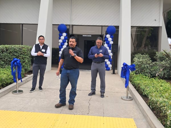 Tony Molina, MCI Torrance service center manager, addresses the crowd at the recent ribbon cutting event.