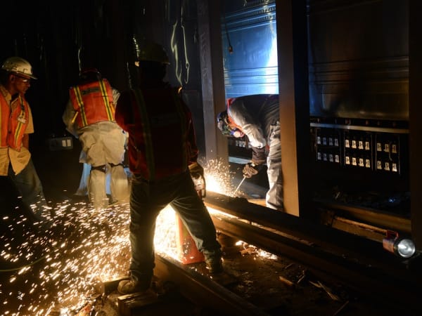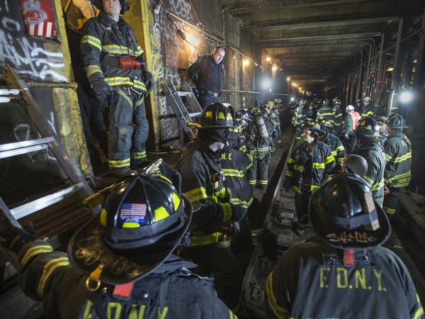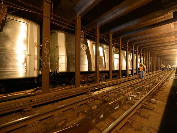 Emergency service workers responded to the derailment of a New York City Transit F train under Broadway and 60th Street in Woodside, Queens, on May 2, 2014. Photos courtesy Metropolitan Transportation Authority / Patrick Cashin and MTA New York City Transit / Marc A. Hermann